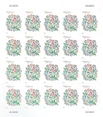 As with the “Yes I Do” Heart of Roses stamp, the “Where Dreams Blossom” Wedding Bouquet stamp was designed by Ethel Kessler using an illustration by Michael Osborne. This stylized bouquet stamp was issued for use on the save-the-date notices, response cards, and thank-you notes.