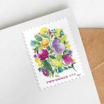 This charming stamp can accommodate the weight of heavy invitations for birthdays, weddings, anniversaries, and other celebrations; greeting cards for all occasions; and mailings such as small gifts that require extra postage. The Wedding Blooms two-ounce stamp is similar in design to the Celebration Blooms Forever Stamp, and the two form a natural pair.